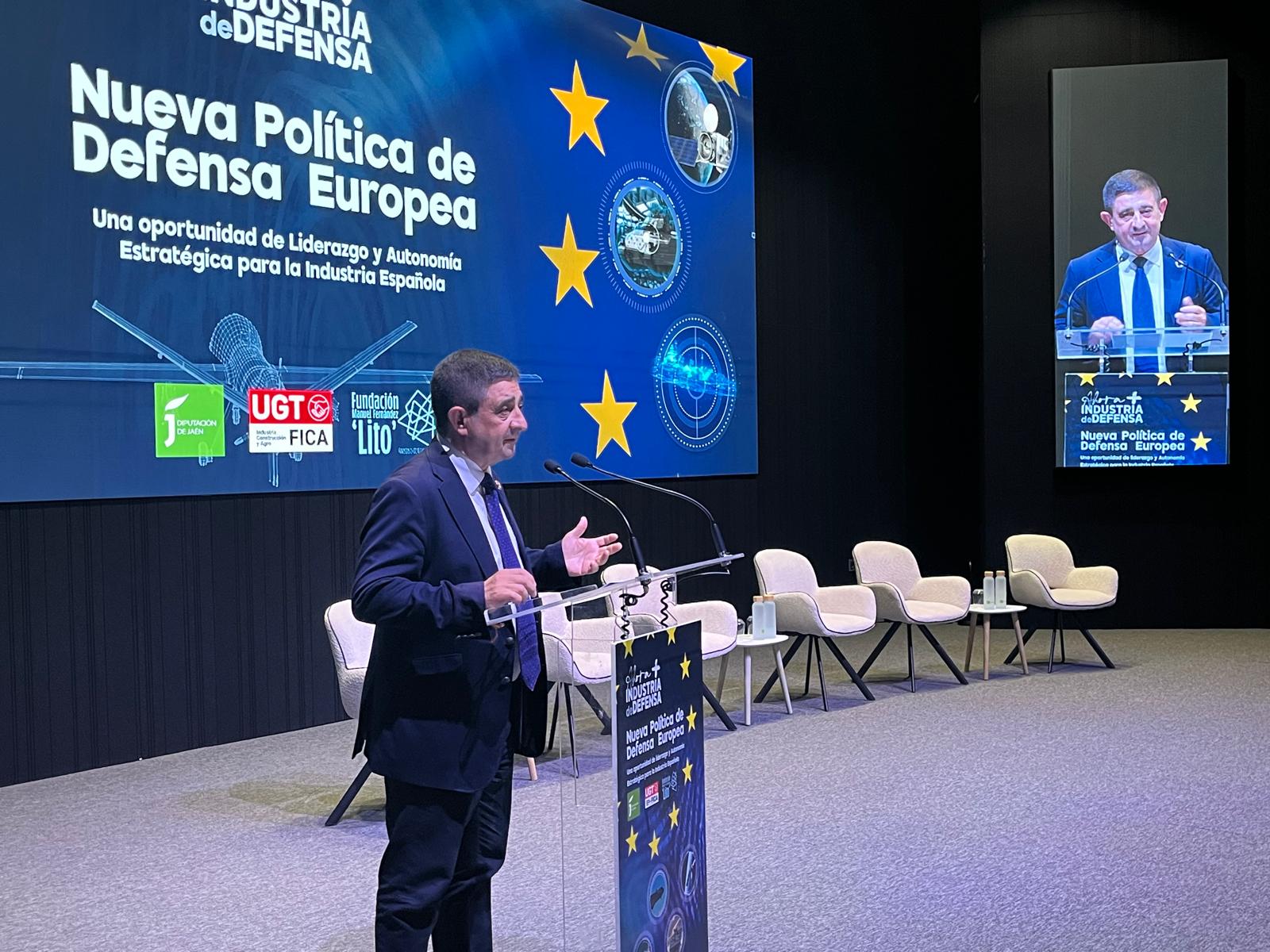 El secretario general de UGT, Pepe Álvarez, ha reiterado el compromiso de la organización sindical con la industria y ha asegurado que “somos plenamente conscientes de que la industria de la defensa genera actividad, genera know how para el conjunto de la industria de nuestro país”. En esta línea, el líder de UGT ha puesto el acento en la elección de Jaén para la celebración de estas jornadas, “algo que no es casualidad, porque Jaén tiene que formar parte de esas zonas, de esos territorios de nuestro país donde haya un impulso de la industria y de la industria de defensa de manera especial. De ahí nuestra apuesta clara, como ha hecho el Gobierno de España, para que Jaén recupere todo lo que le corresponde, en este caso, a través del desarrollo de la industria de defensa”.